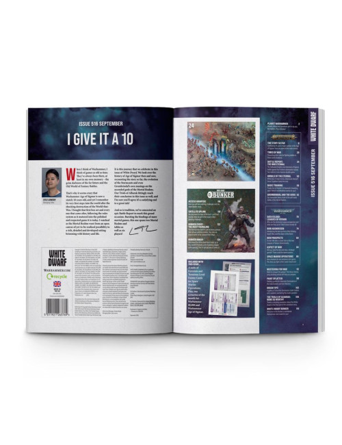 The Space Marines dominate this issue, with a free mini-game based on the Warhammer 40,000: Space Marine 2 video game, a transfer sheet, power armour poster, and more!