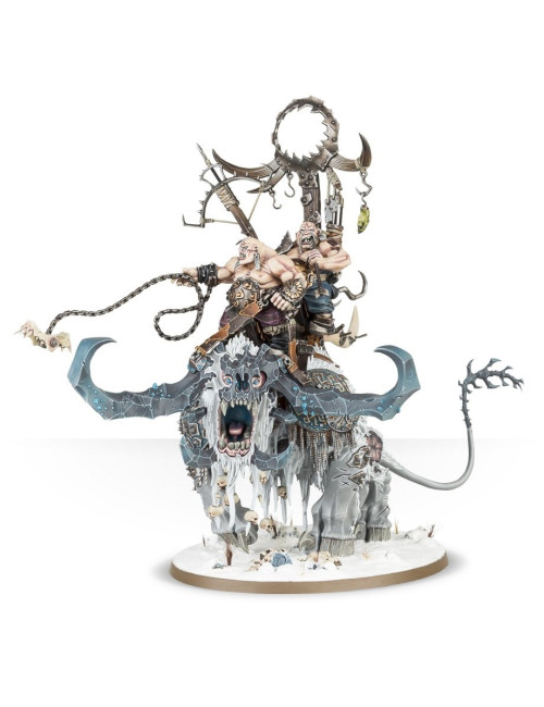 Este kit multicomponente de plástico contiene todas las piezas necesarias para montar un Frostlord en Stonehorn, con una peana ovalada Citadel de 120 x 92 mm. El kit sirve para montar, como alternativa, a un Huskard o Beastriders en Stonehorn, o a un Huskard, Frostlord o Beastriders en Thundertusk.