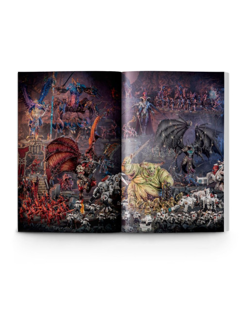 En el interior, encontrarás información sobre el entorno sombrío y devastado por la guerra de Warhammer 40,000: ¡se conoce como la oscuridad sombría del futuro lejano por una buena razón! Luego podrás leer sobre todos los aspectos del hobby de Warhammer 40,000, desde coleccionar ejércitos de impresionantes miniaturas Citadel, pintarlas con los colores que más te gusten y guiarlas a la batalla en una emocionante partida en el tablero.