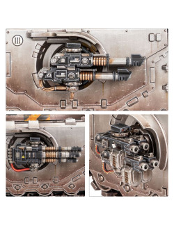 Las barquillas están equipadas con letales lascannons, que pueden reemplazarse por laser destroyers para aumentar su capacidad antitanque, o con Gravis heavy bolter batteries para diezmar la infantería enemiga. El kit también incluye piezas para mejorar el Fellblade con un arma en afuste exterior: un havoc launcher, heavy bolter, heavy flamer, multi-melta, combi-bolter, combi-flamer, combi-melta, combi-plasma o combi-volkite, además de una searchlight, un hunter-killer missile, y opciones estéticas como un artillero o comandante en la torreta, aunque también puedes dejar la escotilla cerrada.