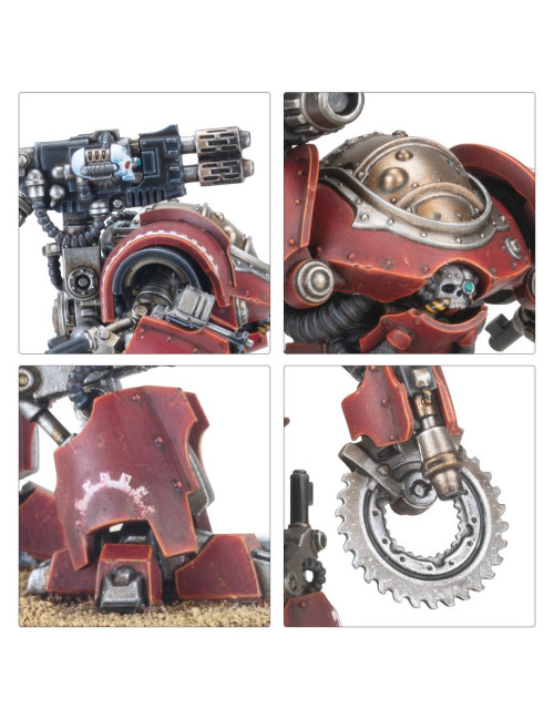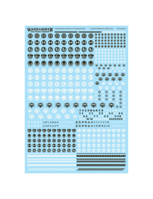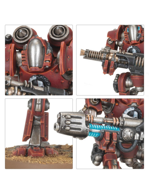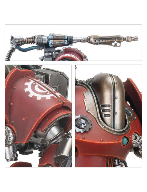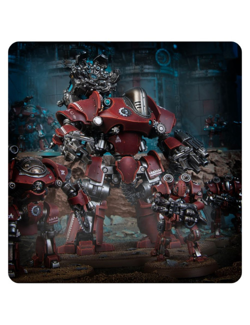 El kit contiene 598 piezas de plástico, 1 peana ovalada Citadel de 120 mm, 2 peanas redondas Citadel de 60 mm, 6 peanas redondas Citadel de 40 mm, 2 hojas de calcomanías para Mechanicum Macro-constructs, cada una con 394 calcomanías al agua de gran calidad, y 2 hojas de calcomanías para Mechanicum Constructs, cada una con 558 calcomanías al agua de gran calidad, para que personalices tus miniaturas.