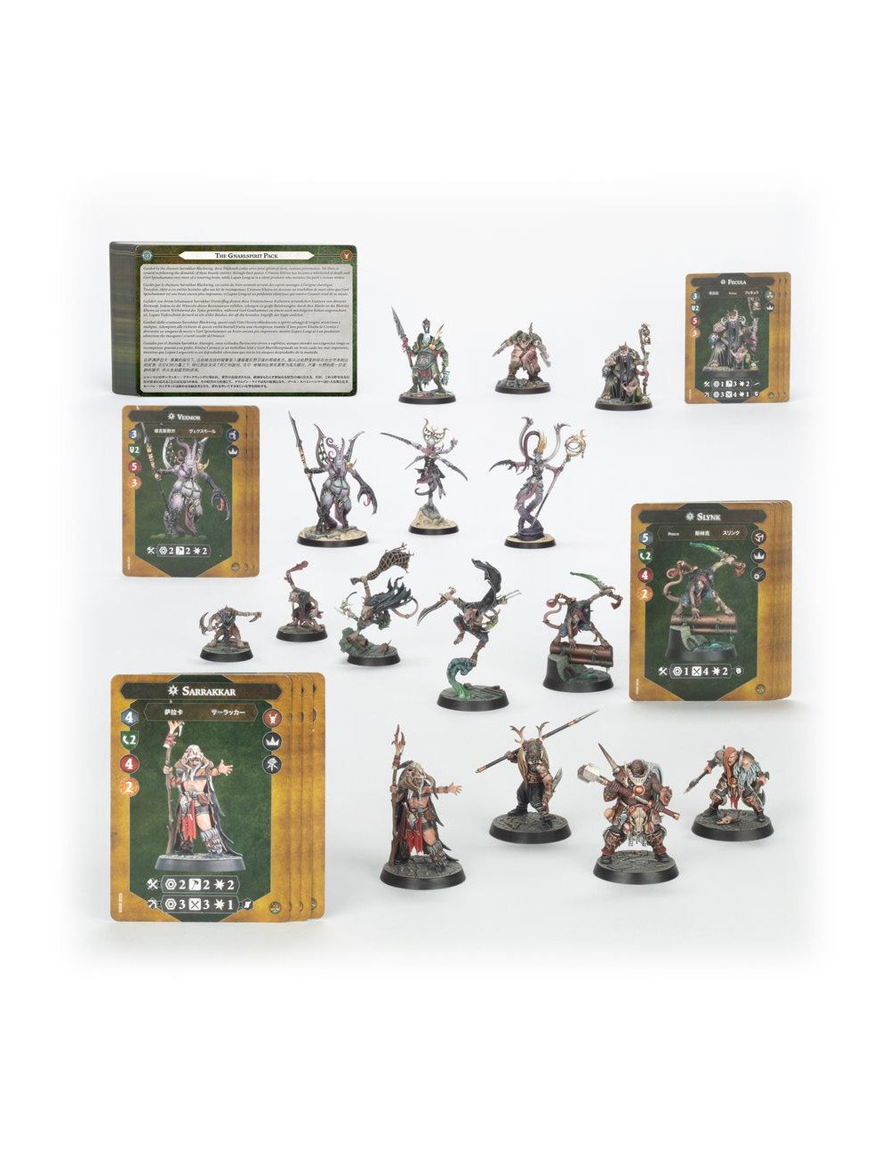 – 4 miniaturas de la Manada Frondaespíritu: Sarrakkar, Gorl, Kheira y Lupan