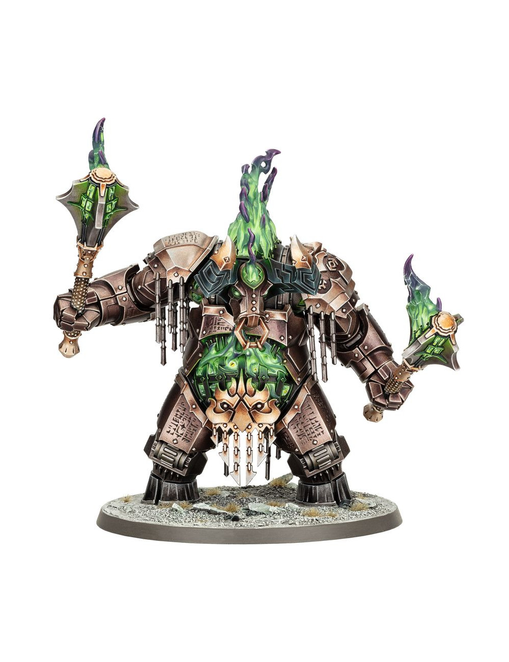 Creado a imagen de Hashut, el Ingenio Dominador es parte fragua ardiente, parte jaula de los daemons esclavizados que lo potencian. Del constructo surgen fuego y humo impíos, y su cuerpo está cubierto de runas para darle todavía más carácter a la miniatura y asegurar que los daemons atrapados no logren escapar. Puedes elegir entre mazas de perdición para aplastar a tus enemigos cuerpo a cuerpo o cañones inmoladores para abrasarlos de cerca. Incluye dos tabardos metálicos, dos juegos de cuernos y dos placas faciales para personalizar a tu autómata.