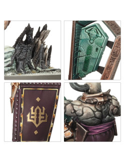 Se dice que Urak Taar es antiquísimo, que estudió con el propio Hashut cómo dominar al Caos, que ha fabricado más ingenios daemónicos de los que recuerda y que fue el responsable de llevar la gran Forja Anatema al culto del Padre Toro. Debería haber sido consumido por la maldición de la carne de piedra hace mucho tiempo, pero con voluntad y secretos arcanos ha retrasado su perdición. Ahora no busca nada menos que seguir a su maestro hacia la divinidad. Sobre Ghorrakos, un gran Tauro de bronce, blande sin miedo las llamas de la ruina, mientras condena a sus enemigos a padecer una fracción de su propia maldición.