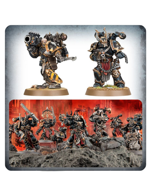 Los Legionarios del Caos lanzan asaltos que pocos pueden resistir. Ya sean Veteranos de la Guerra Eterna con miles de años de experiencia o traidores de las bandas de Renegados, los Legionarios son guerreros letales y adaptables que descargan torrentes de proyectiles explosivos o dan rienda suelta a su odio feroz con golpes de sus espeluznantes espadas sierra.