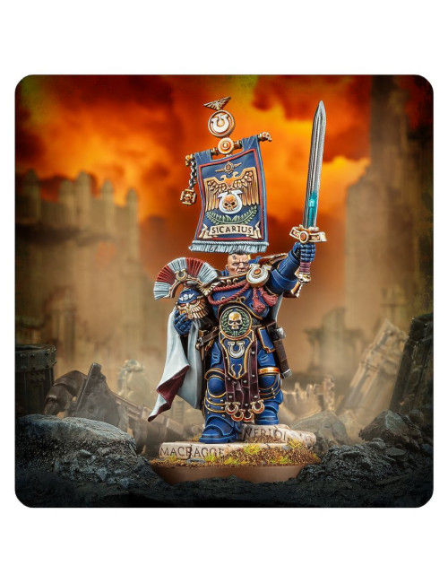 Cato Sicarius es un noble vástago de Talassar y uno de los campeones más consumados de los Ultramarines. Como Capitán de la Guardia de honor Victrix, posee un excelso dominio de la espada y es un auténtico maestro de los asaltos relámpago, desplegando a sus guerreros con una determinación y velocidad nacidas de la confianza más absoluta.