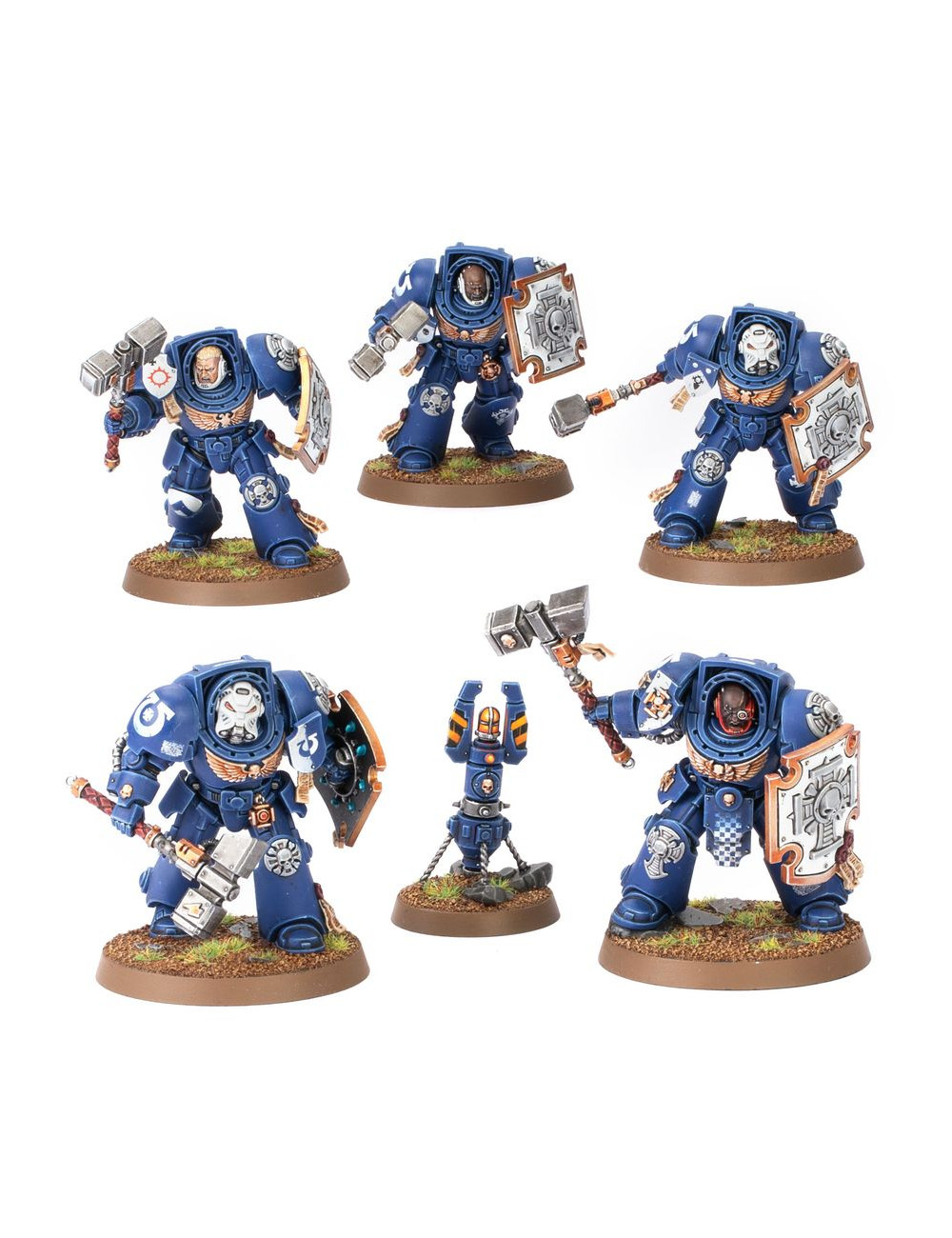 También incluye piezas para montar un Sargento Exterminador de Asalto opcional, que puede elegir entre dos cabezas —una con casco y otra descubierta—, dos escudete decorativos y placas de armadura y armas con más marcas de honor.