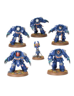 Con este kit multicomponente de plástico puedes montar cinco Exterminadores de Asalto y su baliza de teleportación para tus ejércitos de Marines Espaciales de Warhammer 40,000. Ataviados con las mejores armaduras, son casi inmunes al fuego de las armas más pequeñas, y por su parte reparten una gran cantidad de daño. La unidad puede ir armada con martillos de trueno y escudos de tormenta, ideales para acabar con los objetivos más grandes y resistentes, o con garras relámpago dobles para despedazar a las hordas de tropas enemigas.
