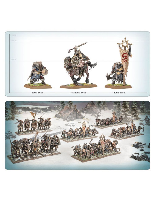 Las tribus que habitan en las tundras septentrionales del Viejo Mundo son un pueblo resistente cuya cultura guerrera se ha consolidado a lo largo de muchos siglos. Los Poderes Ruinosos han terminado por dominar las vidas de las tribus de bárbaros, ya que los espíritus primordiales a los que adoran son, en realidad, deidades daemónicas del aéter que se alimentan de la devoción de sus siervos mortales.