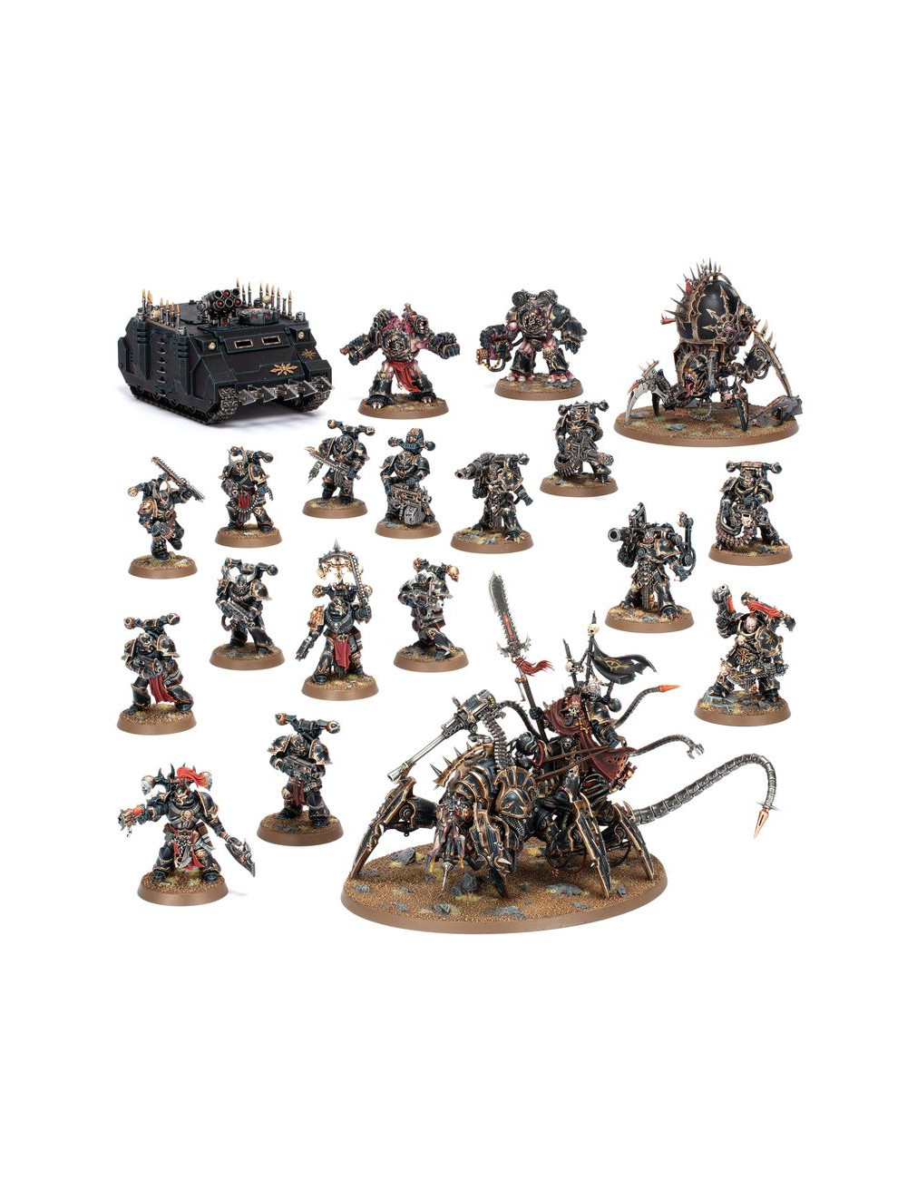 El kit contiene 474 piezas de plástico, 1 peana ovalada Citadel de 120 mm, 1 peana redonda Citadel de 100 mm, 2 peanas redondas Citadel de 50 mm, 5 peanas redondas Citadel de 40 mm y 10 peanas redondas Citadel de 32 mm. Las miniaturas se proporcionan sin montar ni pintar.