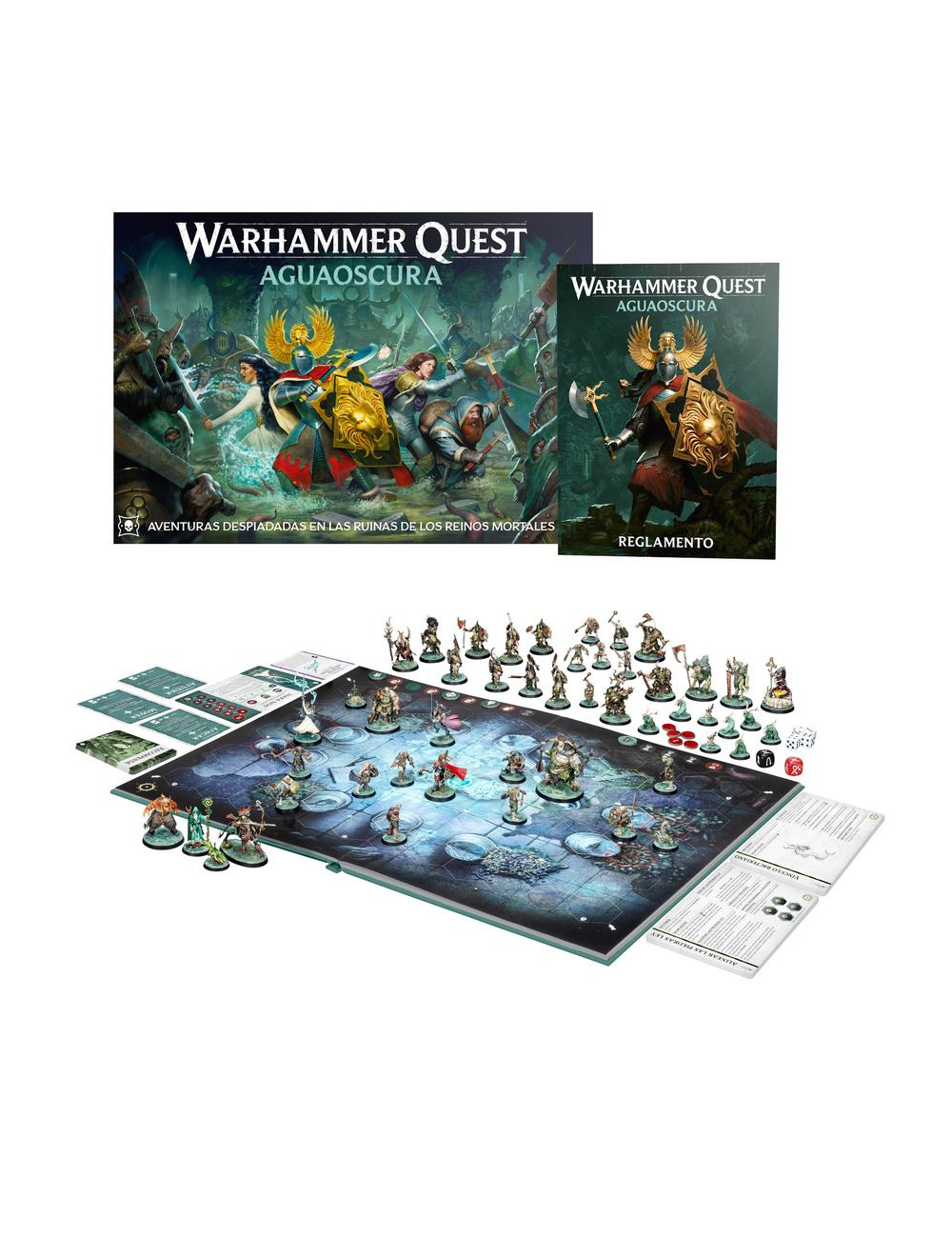 En Warhammer Quest: Aguaoscura tú y hasta tres amigos os metéis en la piel de diferentes héroes para intentar purgar la corrupción de la Abadía de Jade. Solo trabajando en equipo y equilibrando vuestros puntos fuertes y habilidades podréis sobrevivir. En cada viaje iréis descubriendo los ladinos planes del daemónico Príncipe de las Llagas. Vuestras misiones os llevarán a lugares llenos de peligro, pero por el camino obtendréis experiencia y botín que os ayudarán en vuestra aventura, permitiéndoos enfrentaros, llegado el momento, a los enemigos más fuertes, como el propio Gelgus Pust.