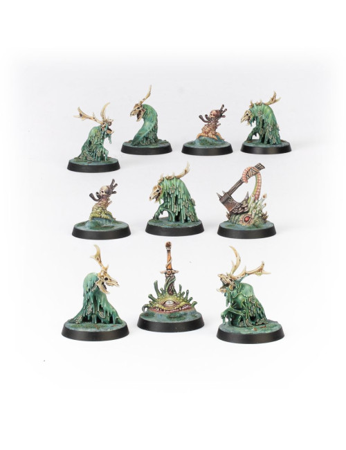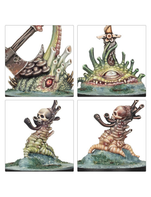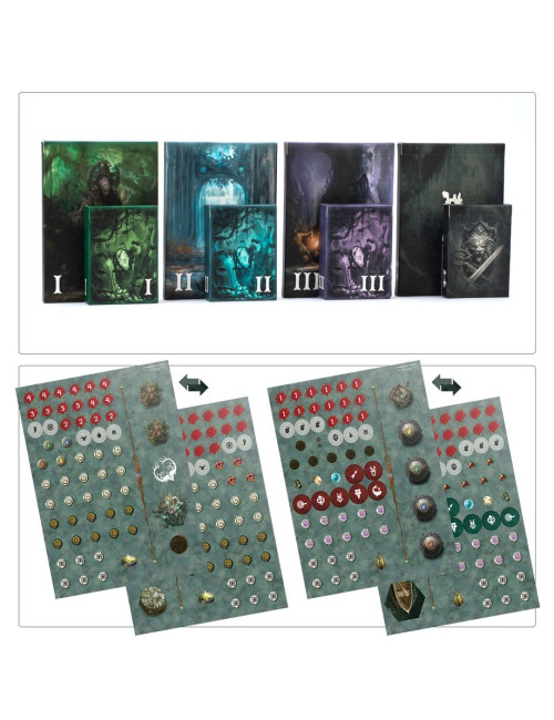 – 33 miniaturas de enemigos: 2 Gangrenatos, 3 Templarios Apestados, 6 Kelpies del lodazal, 8 Pestigors y 14 Pestíclopes