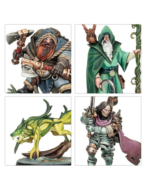 – 7 miniaturas de héroes y 1 acompañante, todos de plástico color caqui: Edmark Valoran, Bren Tylis, Inara Sion, Drolf Cabezahierro, Kelthannor, Drasher Vorn y Jacobus Vyne con su acompañante Wisper