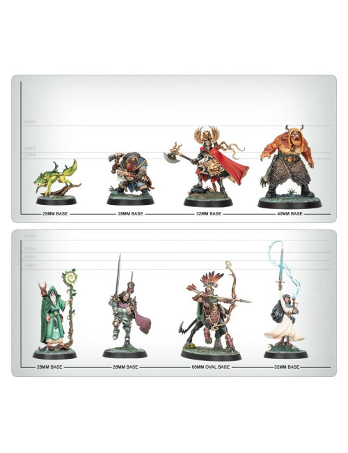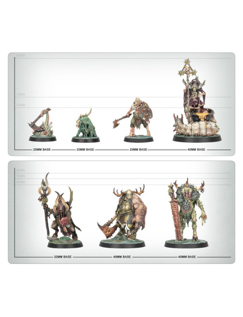 El kit contiene 211 piezas de plástico, 1 peana ovalada Citadel de 60 mm, 1 peana redonda Citadel de 50 mm, 3 peanas redondas Citadel de 28,5 mm, 8 peanas redondas Citadel de 40 mm, 11 peanas redondas Citadel de 32 mm y 25 peanas redondas Citadel de 25 mm, todas ellas con agujeros hexagonales. Estas miniaturas de encaje a presión pueden montarse sin pegamento y se proporcionan sin pintar.