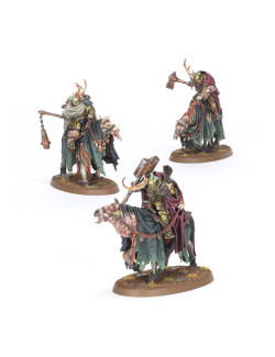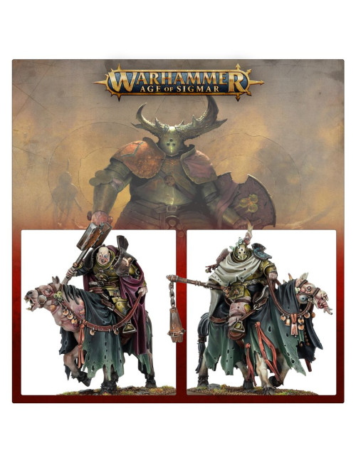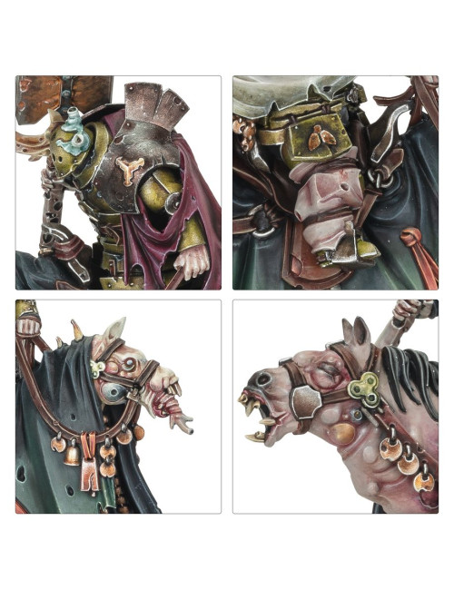 Con este kit multicomponente de plástico puedes montar tres Caballeros Desgarbados, caballería de élite para tus ejércitos de Agusanados de Nurgle de Warhammer Age of Sigmar. A lomos de pestilentes jamelgos mutados, pueden reaccionar con rapidez ante cualquier cambio en la batalla y trabar al enemigo antes que tu infantería. En lugar de portar las lanzas nobles que blandían antaño, ahora están armados con porras entrópicas, armas brutales que se burlan de las armaduras enemigas. El kit incluye cinco cabezas intercambiables, entre ellas una para montar un campeón opcional, y otra cabeza que puede usarse en dos de los Caballeros, dándole así a tu retorcida caballería un cierto grado de personalización.