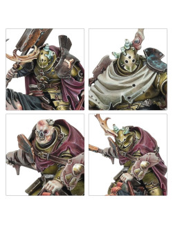 Ataviados con una heráldica putrefacta, los Caballeros Desgarbados han dado la espalda a cualquier honor que pudiesen tener. Ahora son campeones infectos al servicio del Abuelo Nurgle, imponentes figuras montadas en corceles apestados, cuya mera presencia exuda un aura de desesperación palpable y debilitante.