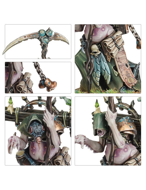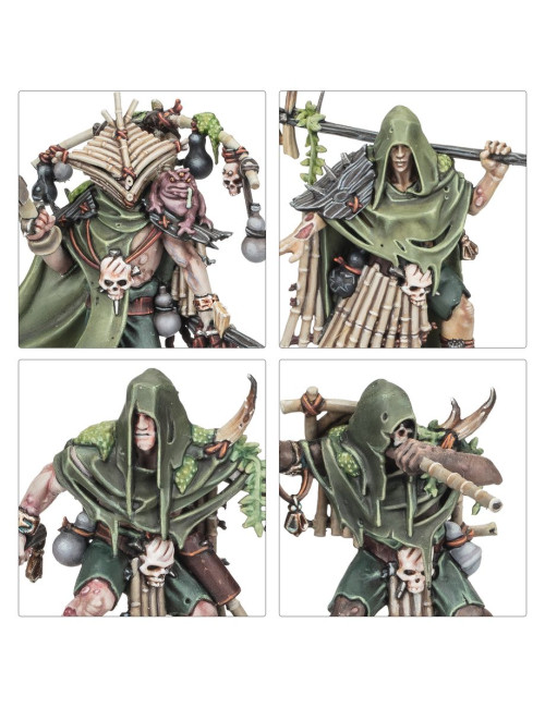 Las miniaturas de la caja son fácilmente personalizables. El Hechicero Putrefactor puede elegir entre una cabeza humana y una cabeza mutada de mosca.