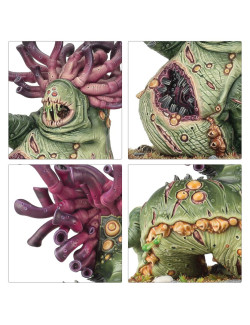 La Bestia de Nurgle puede elegir entre tres barrigas, dos juegos de manos y pies, tres rostros diferentes, dos crestas de tentáculos y dos lenguas babeantes.