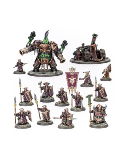 El kit contiene 220 piezas de plástico, 10 peanas redondas Citadel de 28,5 mm, 1 peana redonda Citadel de 25 mm, 1 peana redonda Citadel de 32 mm, 1 peana redonda Citadel de 80 mm y 1 peana redonda Citadel de 100 mm. Las miniaturas se proporcionan sin montar ni pintar.