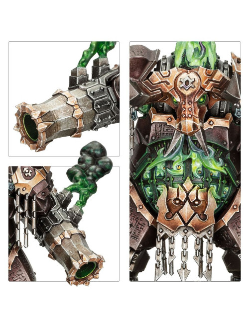 Las miniaturas de la caja son fácilmente personalizables. El Ingenio Dominador puede equiparse con dos brutales mazas de perdición para aplastar a tus enemigos en combate, o con dos cañones inmoladores para convertirlos en cenizas.