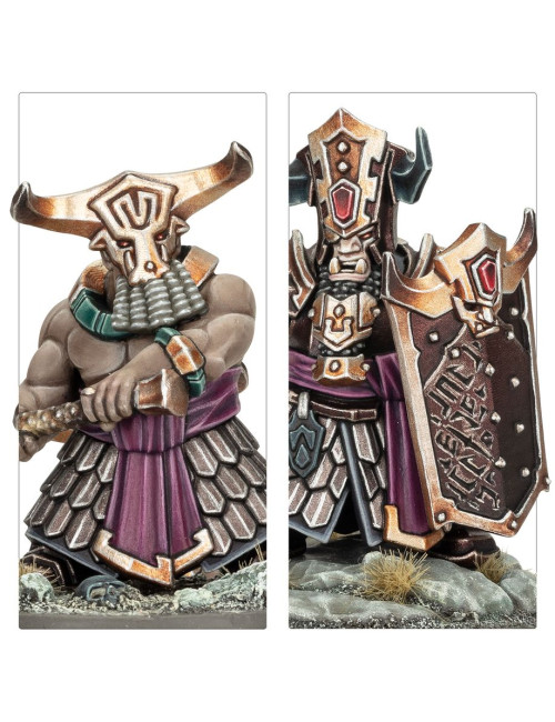 El Padre Toro ansía el poder, y esta caja es perfecta para empezar o ampliar una colección de Herreros Infernales de Hashut de forma más económica que comprando los kits por separado. Esta fuerza, liderada por un cruel Déspota de Guerra, está compuesta por una Cohorte Infernal preparada para aniquilar a tus enemigos con el apoyo de una Bombarda Torturadora y un potente Ingenio Dominador. Juntos conforman una fuerza poderosa capaz de enfrentarse a enemigos de diversa índole. Estas miniaturas forman una fuerza completa de Punta de lanza, lo que significa que podrás empezar a jugar disputadas partidas tácticas nada más abrir la caja.