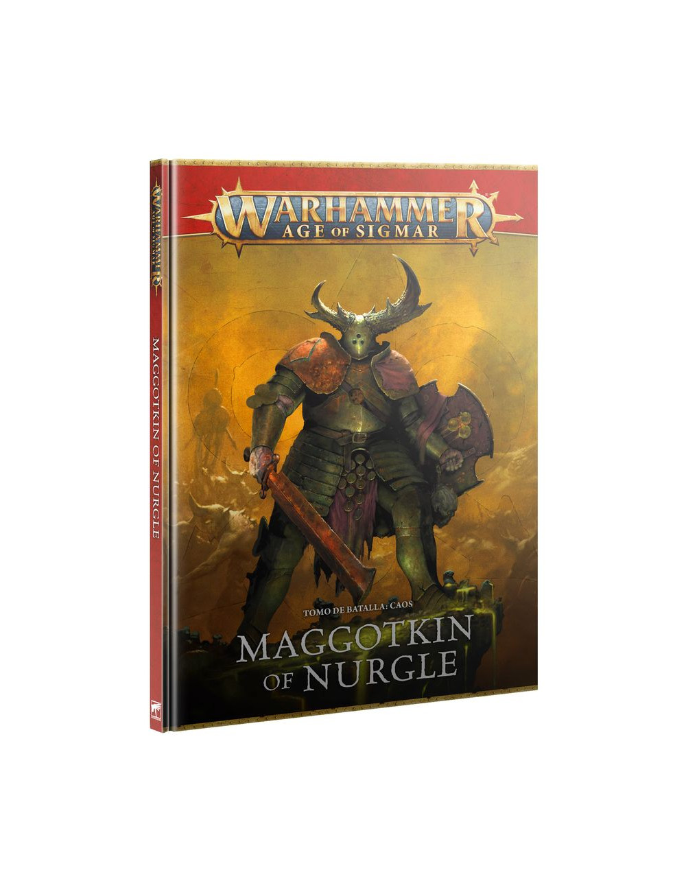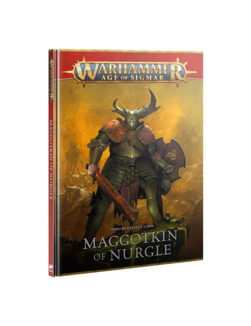 El Tomo de batalla Caos: Maggotkin of Nurgle es un libro esencial para coleccionistas y jugadores que quieran propagar las bendiciones del Abuelo Nurgle en los Reinos Mortales. Este repugnante tomo está repleto de repulsivas ilustraciones, despreciable material de trasfondo sobre los seguidores del Dios de la Plaga, fotografías espectaculares y las reglas que necesitarás para hacer que tus enemigos hinquen la rodilla. Dentro encontrarás hojas de unidad, regimientos y ejércitos de renombre, reglas de Sendero a la Gloria y Yunque de la Apoteosis, y una sección independiente de Punta de lanza que te ayudará a jugar disputadas partidas tácticas con tu colección. Este libro será tu guía para corromper los Reinos Mortales sea cual sea tu forma de coleccionar, pintar y jugar con los Agusanados de Nurgle.