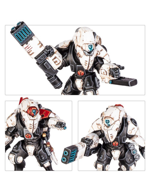 Las Exoarmaduras XV26 Sigilo están perfectamente adaptadas para operar de forma independiente del grueso de las fuerzas del Imperio T’au. Gracias a su equipo especializado, se infiltran tras las líneas enemigas para sabotear, hostigar y desbaratar al enemigo, cumpliendo objetivos vitales por el Bien Supremo.
