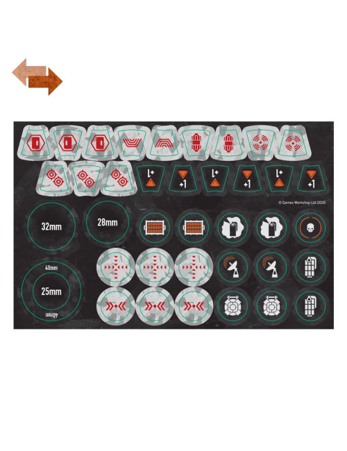 Incluye una hoja con 38 marcadores para usar en partidas de Kill Team