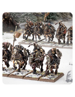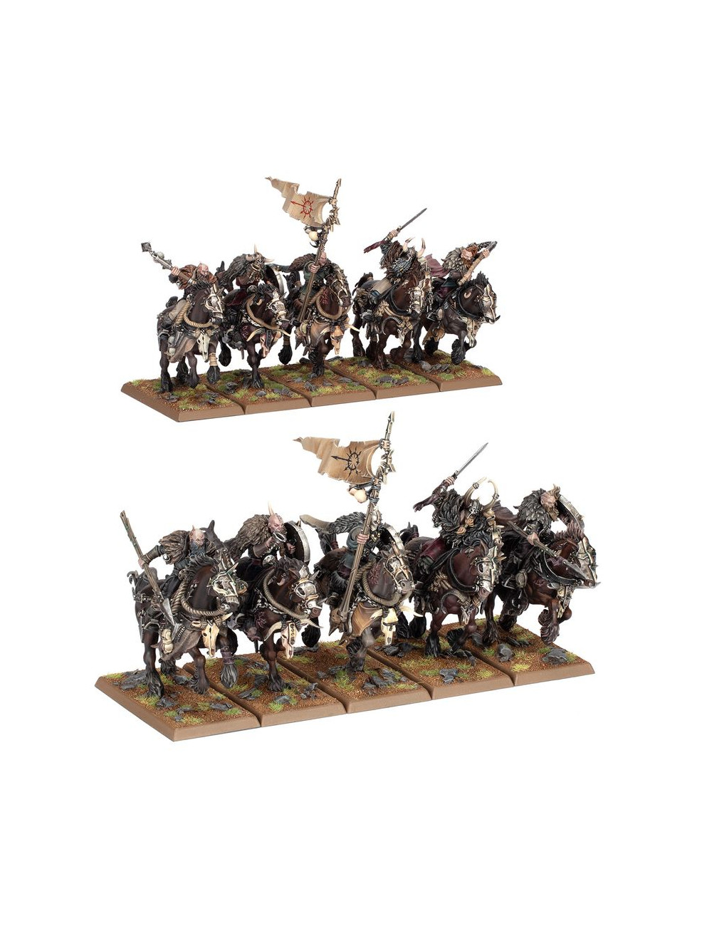 El contenido de la caja puede montarse como una unidad grande de diez jinetes o dos unidades más pequeñas de cinco, cada uno con su campeón, portaestandarte y músico opcionales. Cada miniatura puede estar armada con una spear y shield o con un flail, y todas pueden elegir entre una cabeza con casco o descubierta.