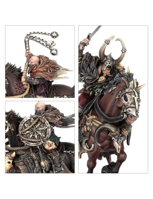 Los jinetes Bárbaros del Caos montan bestias fuertes y temperamentales en batalla. Una vez que un jinete doma a uno de estos caballos, le será leal hasta el final. Alimentadas con carne humana y sangre diluida, estas fieras enérgicas tienen un brillo amenazante en la mirada y se vuelven una furia descontrolada cuando luchan cuerpo a cuerpo.