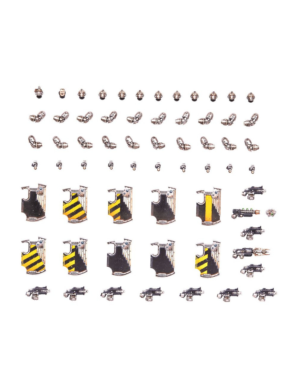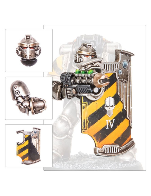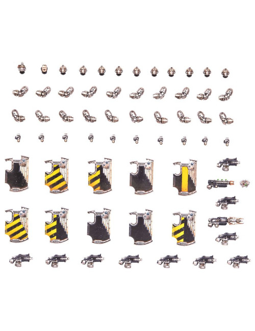 Incluye bólters, escudos, cascos, brazos y armas opcionales