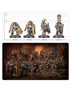 El kit incluye piezas para montar un Sergeant, un Legionary con nuncio-vox y un Legionary con vexilla opcionales. Para el Sergeant puedes elegir entre dos cabezas: una descubierta y una con casco. Puede estar armado con una power sword, power fist o lightning claw, y también puede llevar una melta bomb opcional. Un Legionary puede armarse con una graviton gun opcional, y otro con una lascutter opcional. También se incluyen accesorios, como granadas, pistoleras, y cartucheras, todos intercambiables entre todas las miniaturas.