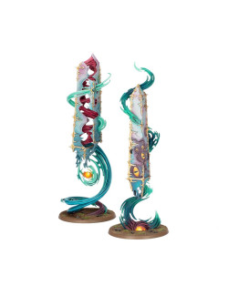 Con este kit multicomponente de plástico puedes montar dos Esquirlas Argénteas, terreno de facción para tus ejércitos de Discípulos de Tzeentch de Warhammer Age of Sigmar. Estas columnas de energía mágica potencian tus fuerzas próximas, dándote una ventaja vital a la hora de ejecutar tus malvados planes.