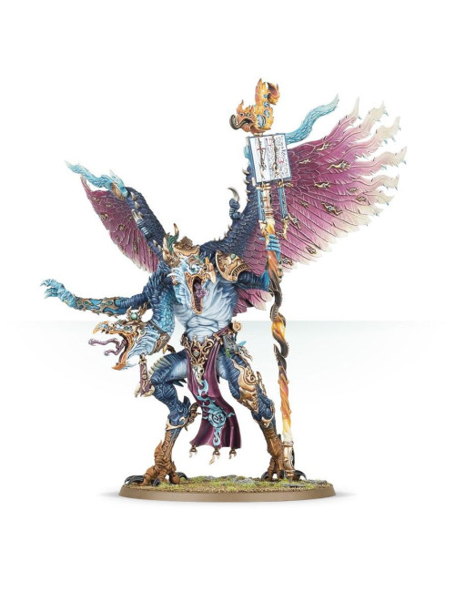 Esta completísima caja es ideal para empezar o ampliar una colección de Discípulos de Tzeentch y anegar los Reinos Mortales de Warhammer Age of Sigmar con su enloquecedora energía mágica, y todo ello de forma más económica que comprando los kits por separado. La fuerza está liderada por Kairos Tejedestinos, el Oráculo de Tzeentch, un enorme gran daemon que puede vislumbrar tanto el pasado como el futuro y que dirige sus tropas con el apoyo de un Incinerador Glorioso de Tzeentch y un Heraldo de Tzeentch en Carro Flamígero. El grueso de la fuerza está formado por Horrores Rosa, Horrores Azules y Horrores de Azufre, que inundan el campo de batalla para tomar y mantener objetivos vitales. Los Incineradores de Tzeentch añaden más potencia a tu ejército, y los Aulladores de Tzeentch aportan su veloz capacidad de respuesta.