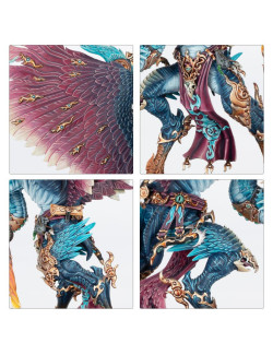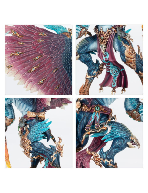 El Incinerador Glorioso de Tzeentch y el Heraldo de Tzeentch en Carro Flamígero pueden montarse como un Carro Flamígero de Tzeentch, con el Heraldo a pie. El Heraldo puede elegir entre tres cabezas diferentes, empuñar un báculo o un letal filo en una mano, y llevar un libro o llamas mágicas en la otra, o tenerla vacía.
