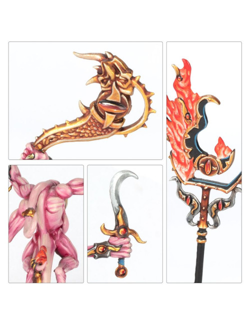 Uno de los Incineradores de Tzeentch puede montarse como un campeón, y los brazos, cabezas y tentáculos adicionales son intercambiables entre todas las miniaturas.