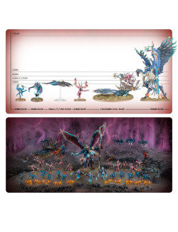 El kit contiene 328 piezas de plástico, 1 peana ovalada Citadel de 120 mm x 92 mm, 1 peana ovalada Citadel de 75 mm x 41,5 mm, 1 peana redonda Citadel de 100 mm, 14 peanas redondas Citadel de 32 mm, 23 peanas redondas Citadel de 25 mm, 3 peanas pequeñas de volador y 4 varillas de volador de punta esférica. Las miniaturas se proporcionan sin montar ni pintar.