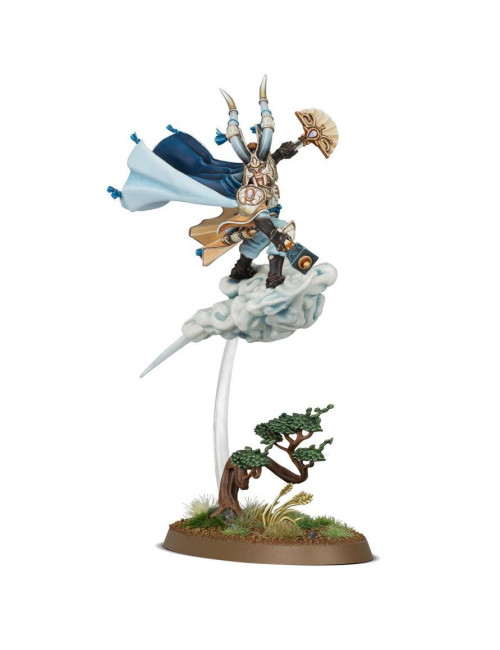 ¡Cabalga con el viento! Esta caja es perfecta para empezar o ampliar una colección de Lumineth Soberanos de una forma más económica que comprando los kits por separado. Esta fuerza de élite está liderada por un Magoventoso Hurakan, un poderoso hechicero montado en un banco de nubes vivas y defendido por una unidad de Guardianes Auralanos Vanari armados con lanzas y escudos. Una unidad de Cargavientos Hurakan proporciona la velocidad necesaria para tomar y defender objetivos distantes. La fuerza está apoyada por las descargas del Arco de la venganza del viento de un Espíritu del Viento Hurakan. Estas miniaturas forman una fuerza completa de Punta de lanza, lo que significa que podrás empezar a jugar disputadas partidas tácticas y purificar los Reinos Mortales nada más abrir la caja.