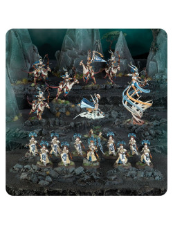 El kit contiene 250 piezas de plástico, 1 peana redonda Citadel de 60 mm, 3 varillas Citadel de 45 mm, 6 peanas ovaladas Citadel de 60 mm x 35 mm y 10 peanas redondas Citadel de 32 mm. Las miniaturas se proporcionan sin montar ni pintar.