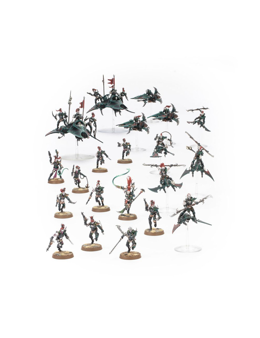 El kit contiene 377 piezas de plástico, 12 peanas redondas Citadel de 25 mm, 8 peanas pequeñas Citadel para voladores, 16 varillas para voladores con cabeza esférica y 2 peanas grandes Citadel para voladores. Las miniaturas se proporcionan sin montar ni pintar.