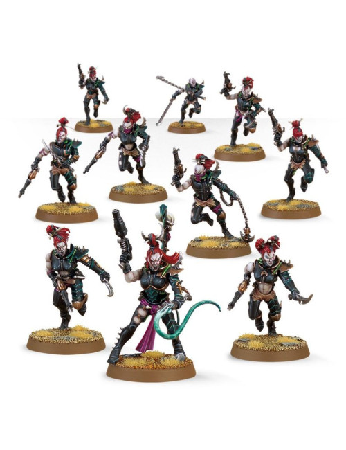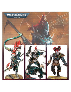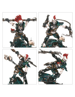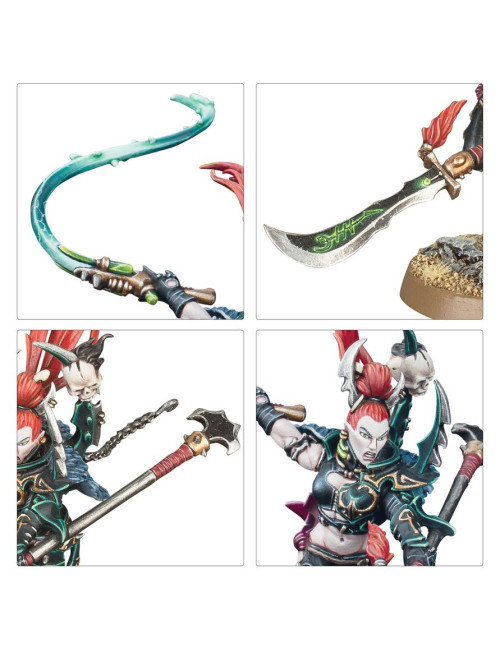Las Brujas incluyen piezas para montar una campeona opcional, que puede estar armada con una pistola cristalina o una pistola bláster, y un filo de Hekatarii, espada de energía o agonizador. La caja viene con armas opcionales —brazales hidra, flagelos cuchilla y una filorred y empalador— y las piernas, cuerpos, brazos y 14 cabezas diferentes son todas intercambiables entre las miniaturas.