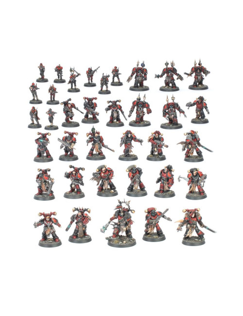 Esta completísima caja es ideal para empezar o ampliar una colección de Corsarios Rojos de los Marines Espaciales del Caos para Warhammer 40,000 de forma más económica que comprando los kits por separado. Esta fuerza salvaje está liderada por un Capitán de Pillaje de los Corsarios Rojos, un guerrero despiadado que gobierna con puño de hierro. Está acompañado de Asaltantes Corsarios Rojos, Marines Espaciales renegados que rompieron sus juramentos para seguir al Tirano de Badab. Entre los seguidores de Huron Corazón Negro también se incluyen veteranos Legionarios y Exterminadores del Caos con una larga experiencia en combate que hace todavía más temibles a los Corsarios Rojos, como los Guardias Traidores, expertos en mantener objetivos o lanzarse contra enemigos debilitados. Juntos forman una fuerza feroz y temible, ideal para representar un Destacamento Banda de Renegados, cuyas reglas puedes encontrar en El Torbellino: El cubil del Tirano – Destacamentos, disponible por separado.