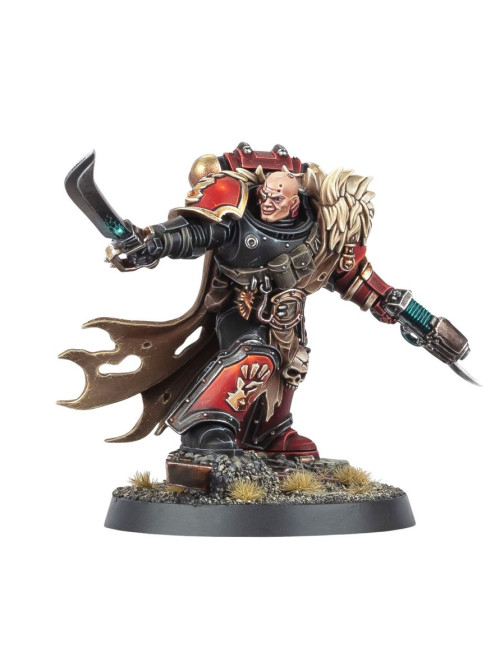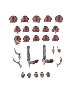 La matriz de mejoras para Corsarios Rojas está diseñada para utilizarse con miniaturas de Legionarios y de Escuadra de Exterminadores del Caos. Incluye cinco cabezas descubiertas, 10 hombreras para servoarmadura, cinco hombreras para armadura Exterminador y accesorios como cartucheras, trofeos colgantes y espadas sierra.