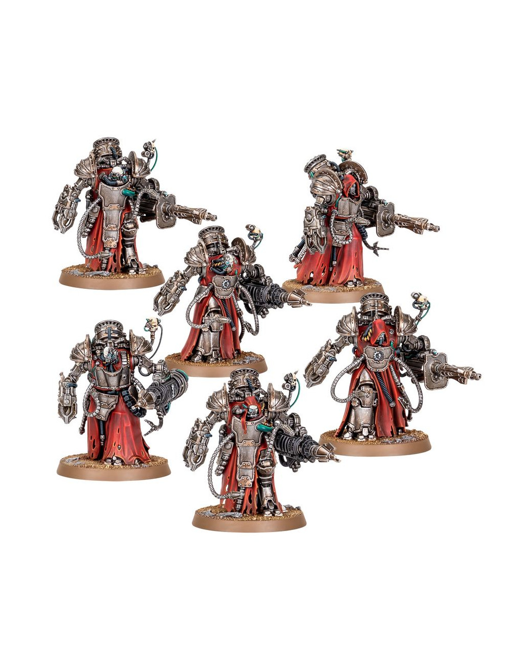 Estas miniaturas no llevan insignias específicas de ningún bando, por lo que puedes incluirlas en cualquier fuerza del Mechanicum, ya veas en el Emperador al Omnissiah verdadero o a un falso profeta.
