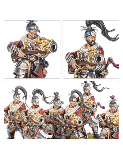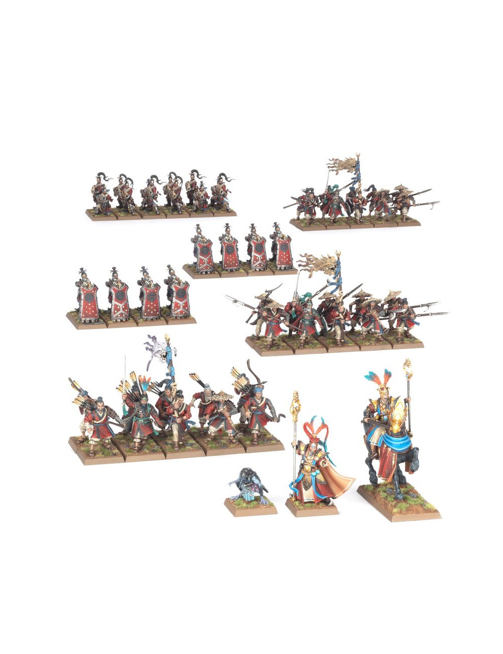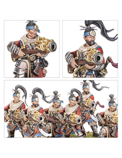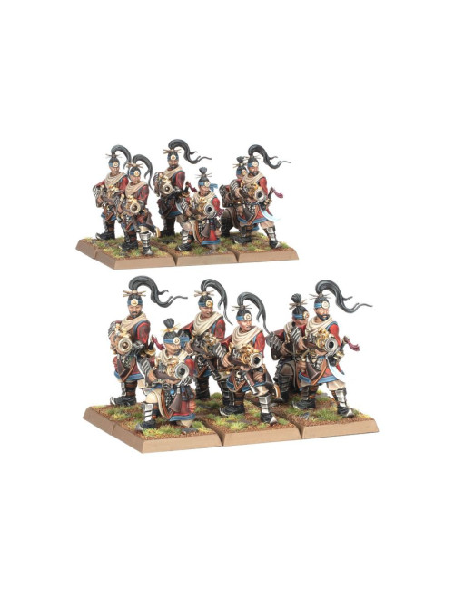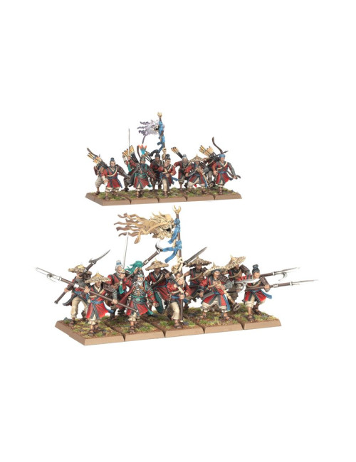 Esta completísima caja es ideal para empezar o ampliar una colección de Armies of Grand Cathay para Warhammer: The Old World. Liderados por dos Astromancers, uno a pie y otro a caballo, estos refuerzos cuentan con un gran apoyo mágico. El grueso de la fuerza está formado por una Peasant Levy capaz de abrumar a enemigos más duros con su superioridad numérica. Crane Gun Teams y Iron Hail Gunners aportan una potencia de fuego considerable, capaz de eliminar a cualquier enemigo a distancia. Esta caja incluye en primicia todas estas miniaturas nuevas.