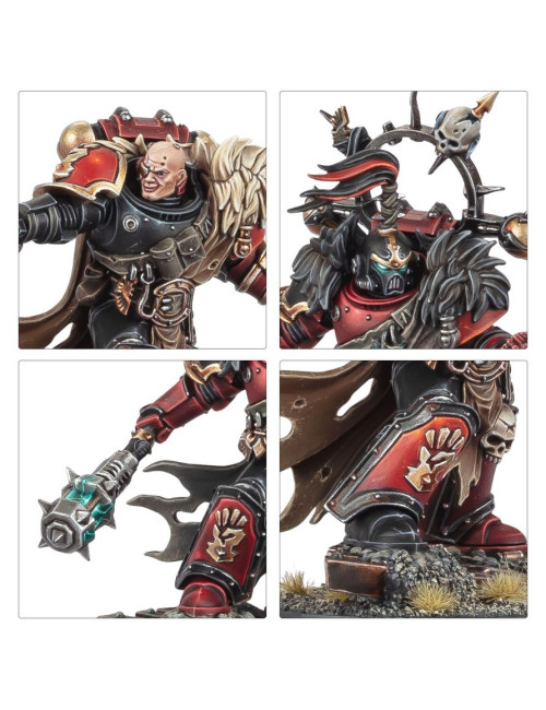 Uno de los Incursores puede montarse como campeón. El kit incluye 14 cabezas y 16 hombreras intercambiables y diferentes armas, como bólteres, pistolas bólter y terribles filos saqueadores.