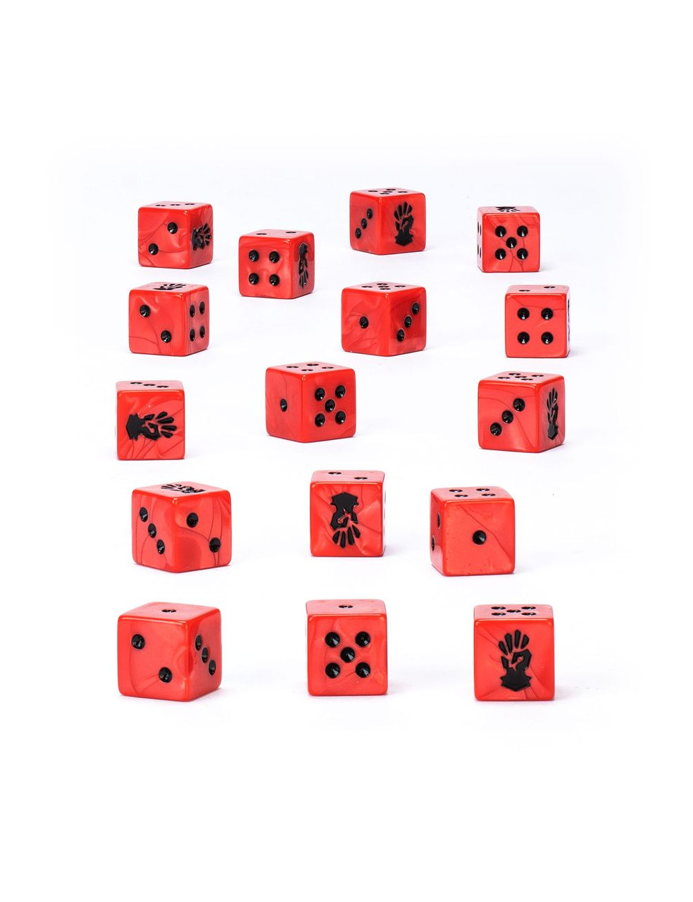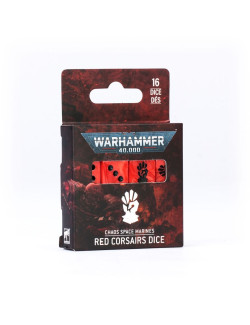 Este es un juego de 16 dados de seis caras con esquinas cuadradas para usar en partidas de Warhammer 40,000, con la temática de los Corsarios Rojos. Están fabricados en plástico acrílico de color rojo perlado con muescas en tinta negra y miden 16 mm de arista. Las caras del 1 al 5 presentan los tradicionales puntos y la cara del 6 está adornada con el amenazante emblema de los Corsarios Rojos. Este juego de dados solo estará disponible hasta agotar existencias.