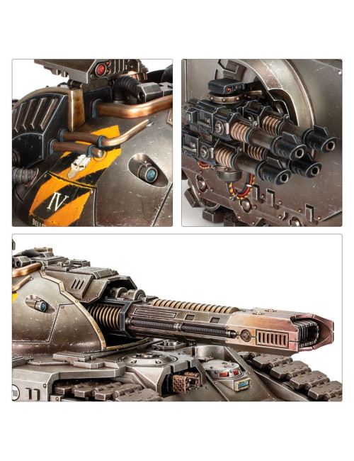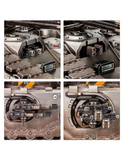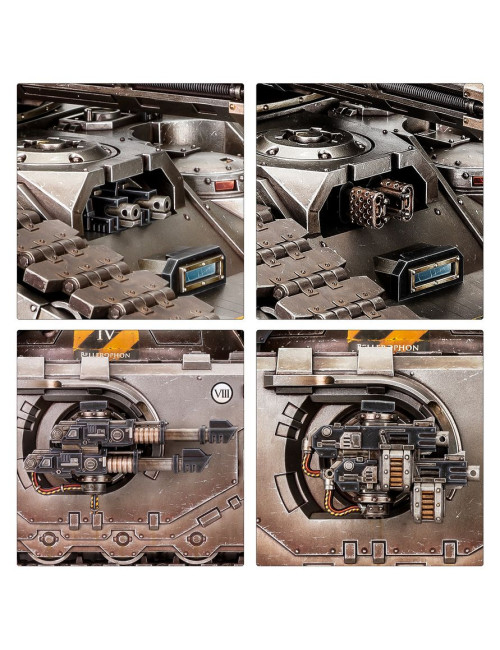 El Glaive puede equiparse con hull-mounted twin heavy flamers or hull-mounted twin heavy bolters, y sponson-mounted lascannon, sponson-mounted laser destroyers o sponson-mounted Gravis heavy bolters, dándote así herramientas para enfrentarte a cualquier enemigo. El kit también incluye piezas para añadir un hunter-killer missile, smoke launchers y searchlight opcionales.