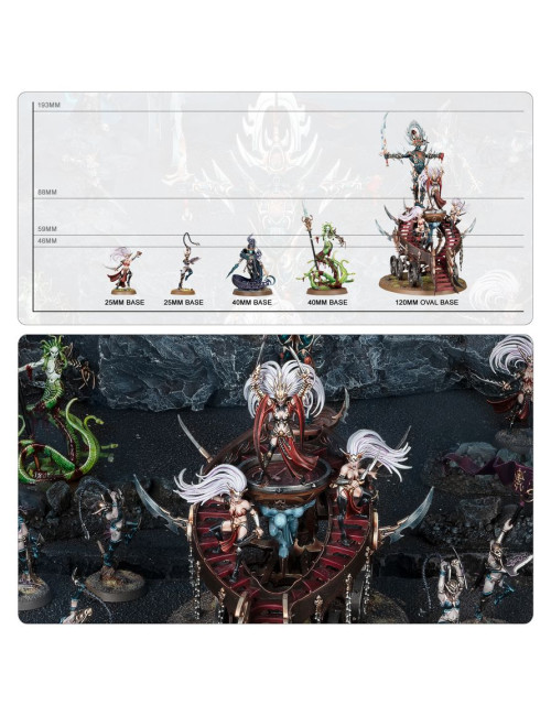 El kit contiene 253 piezas de plástico, 1 peana ovalada Citadel de 120 mm x 92 mm, 2 peanas redondas Citadel de 40 mm, 9 peanas redondas Citadel de 28,5 mm y 12 peanas redondas Citadel de 25 mm. Las miniaturas se proporcionan sin montar ni pintar.