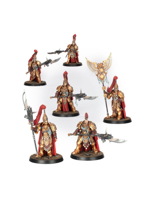 Cada miniatura está repleta de detalles, con iconografía y filigrana esculpidas que les conceden un aspecto ornamentado digno de los guardaespaldas del Emperador. Un Custodian Guard puede reemplazar su guardian spear por una magisterium vexilla. El kit también incluye 23 cabezas intercambiables —12 con casco y 11 descubiertas— y 6 penachos intercambiables entre los cascos, haciendo que personalizar a tus legendarios guerreros sea de lo más sencillo.